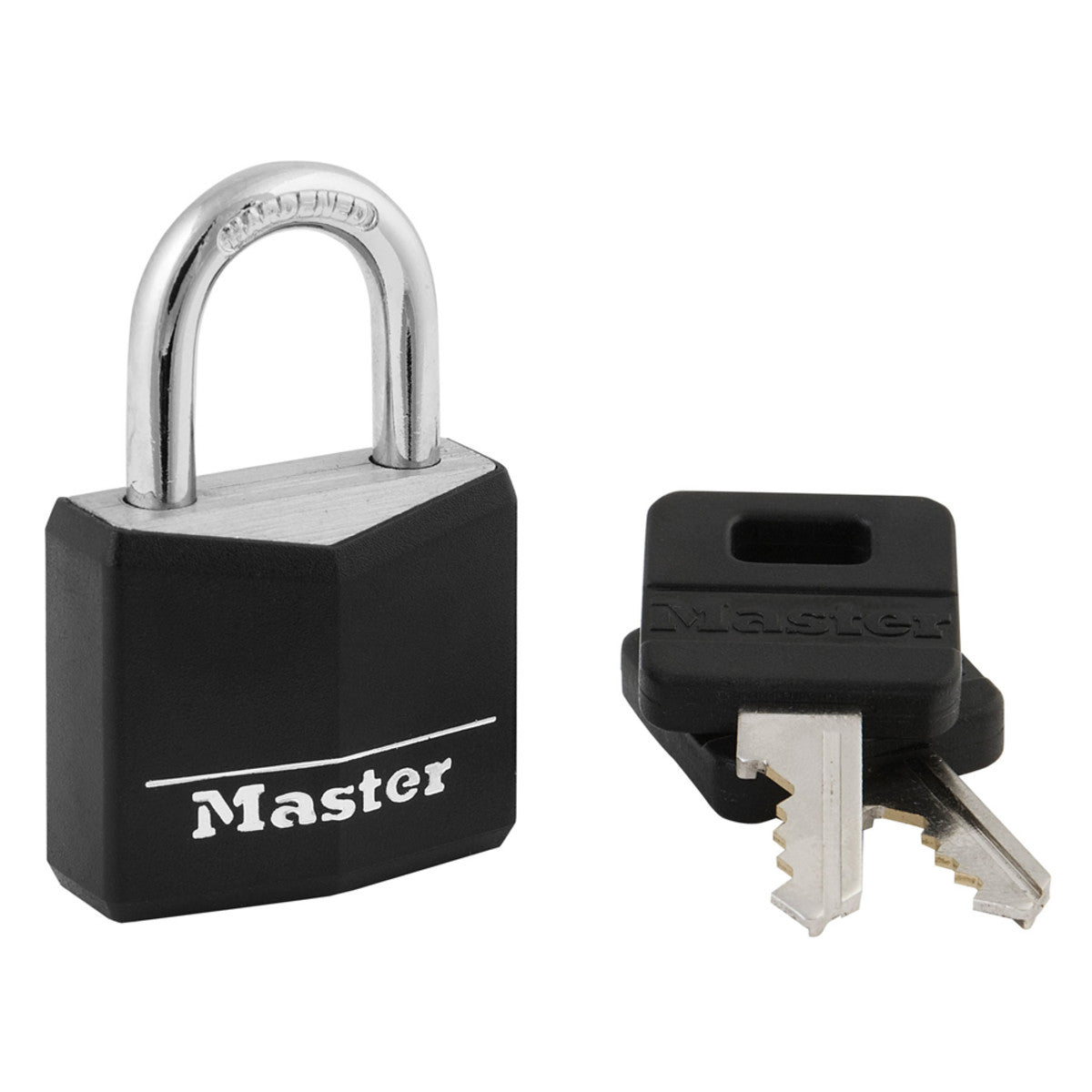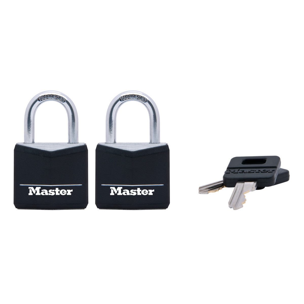 • values1-3/16in (30mm) Wide black vinyl covered body for scratch resistanceMade of corrosion resistant materialsHardened steel shackle for extra cut resistance4-pin cylinder for added pick resistanceMatching colored key head for added convenienceKeyed Alike - same key opens all locks