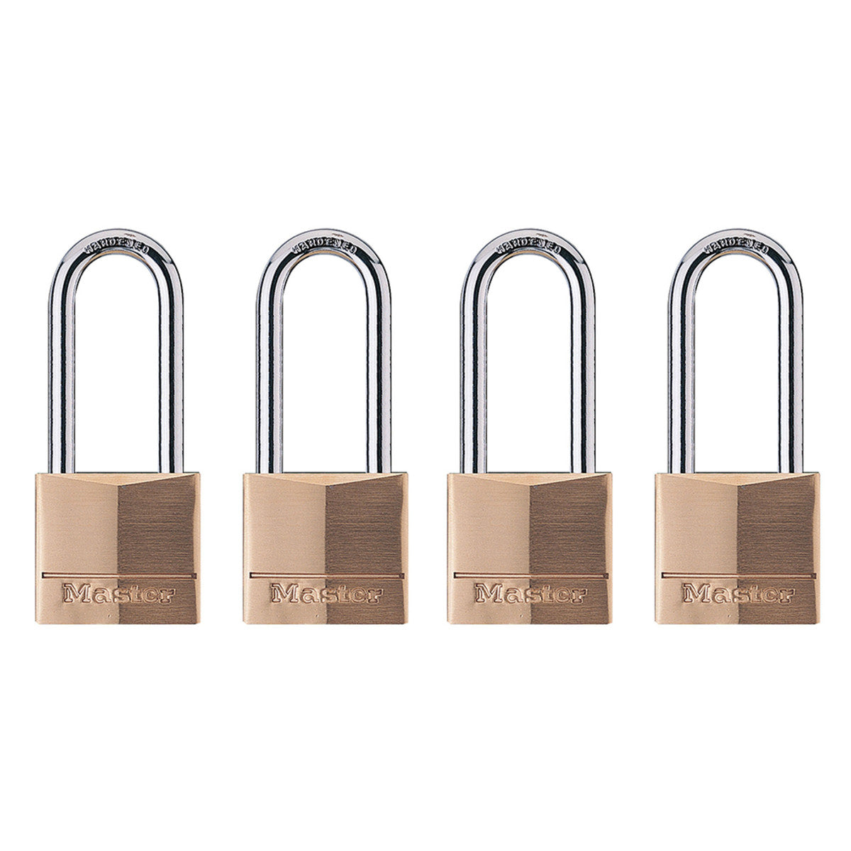 This padlock features a solid brass body for durability and corrosion resistance. The hardened steel shackle offers strong cut resistance, and the four pin cylinder helps prevent picking.